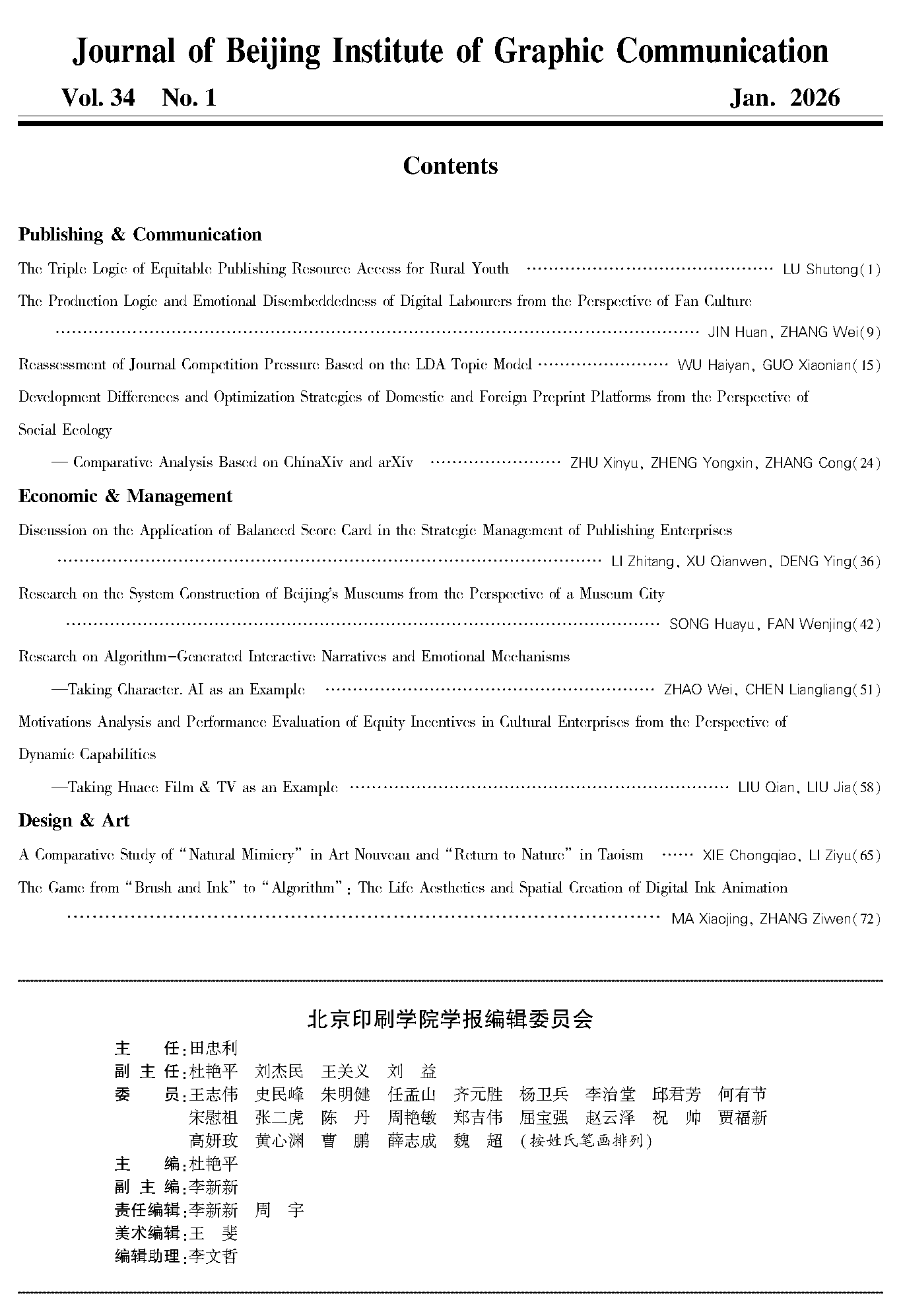 北京印刷学院学报2026年第1期
